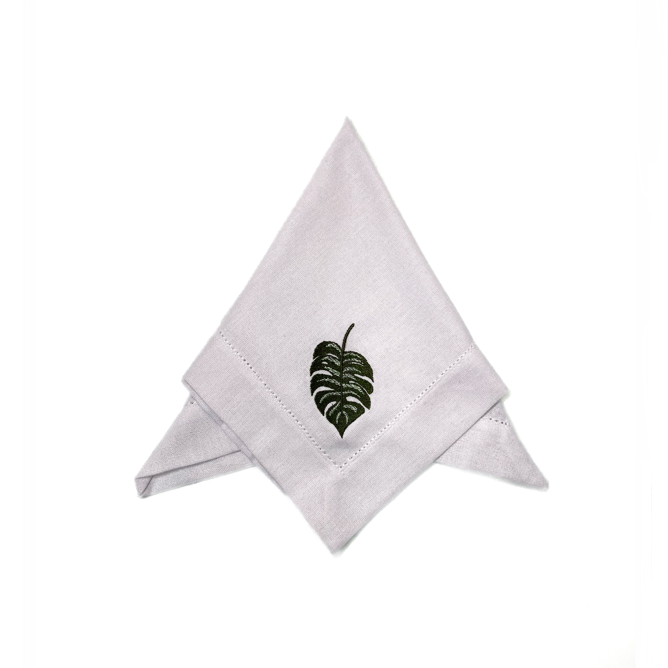 Guardanapo linho misto, ponto ajour, bordado costela de Adão tom verde. Um detalhe que une natureza e sotisficação, perfeito para compor mesas temáticas, tropicais ou clássicas com charme atemporal.